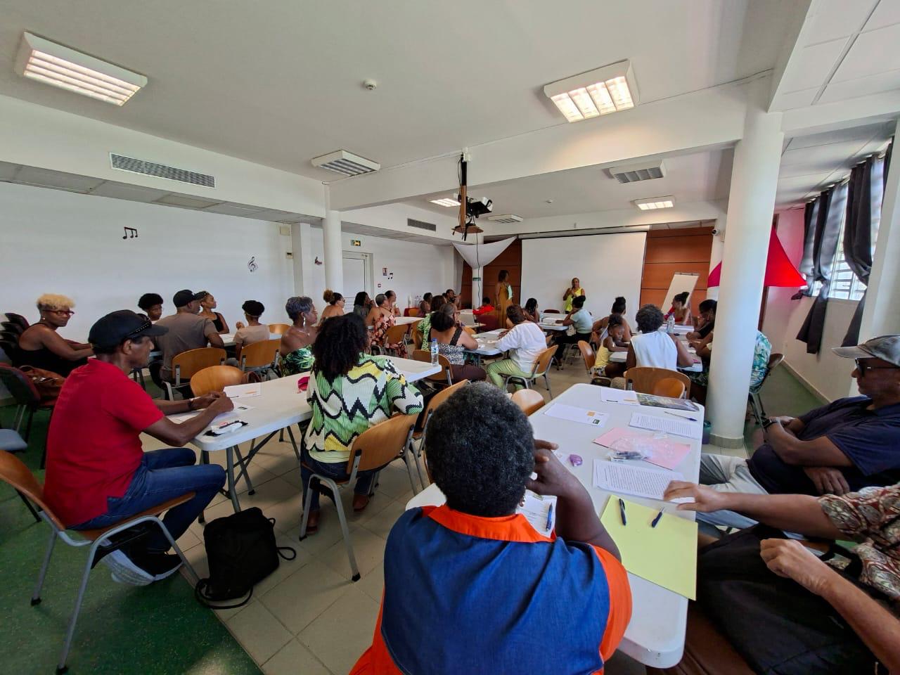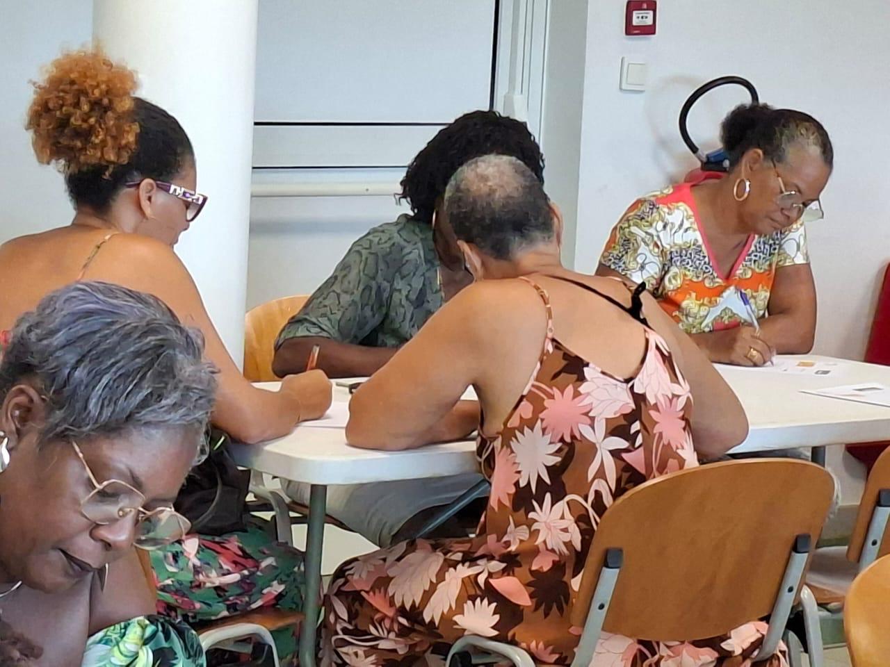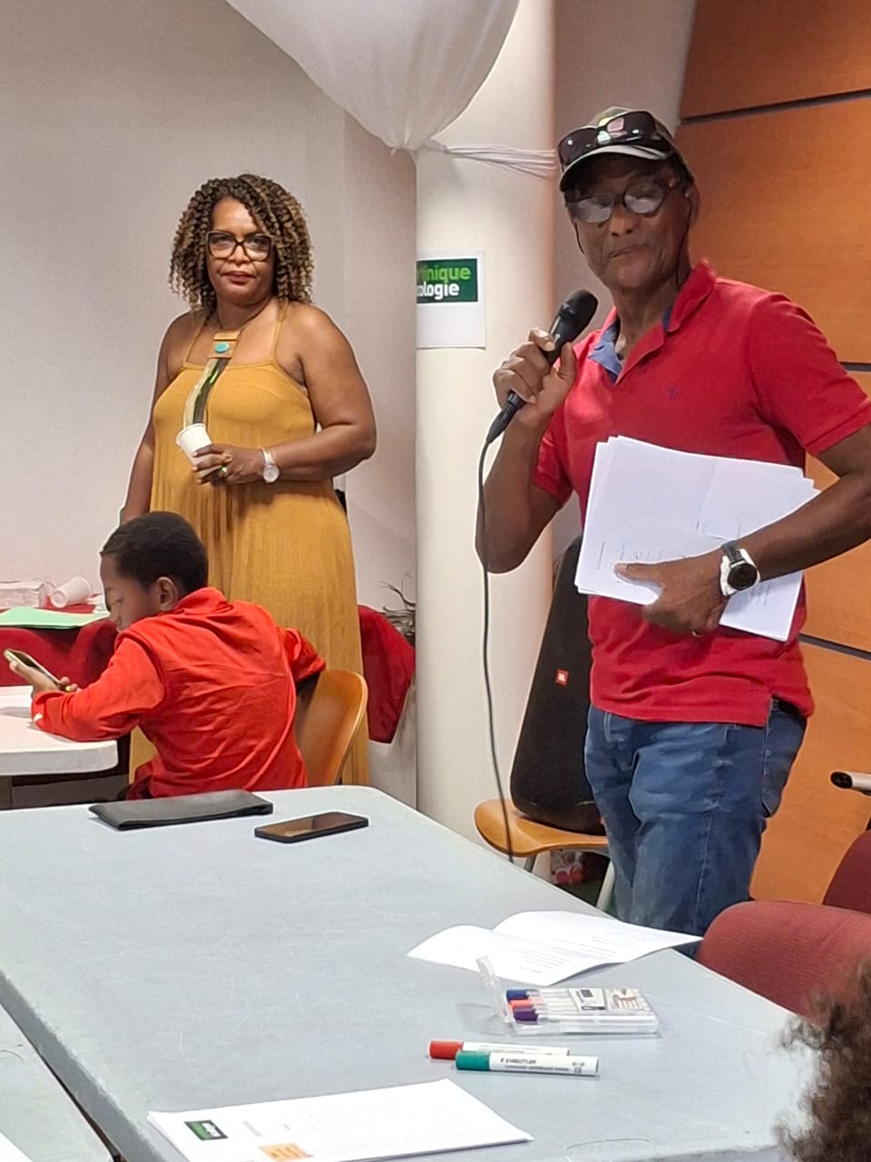 Fidèle à ses engagements en faveur de l’environnement et en première ligne dans le combat contre l’empoisonnement au Chlordécone, Martinique-Écologie a proposé un texte d’actualité brûlante rédigé par l’écrivain et universitaire Raphaël Confiant sur le thème « Agrikilti ek Pestisid ». Une occasion supplémentaire d’enrichir notre langue menacée par une francisation galopante que seul l’écrit pour contrecarrer. Dans le droit fil des travaux du GEREC pour une graphie du créole, Jane Étienne a fait preuve de pédagogie répondant à l’enthousiasme et aux nombreuses questions des participants. Entre exposé sur les origines du créole et tableau à l’appui, cette enseignante d’origine Kalinago a suscité des échanges fructueux où elle a distillé des règles grammaticales et de syntaxe pour le bonheur de tous. Dans l’attente de la correction des copies, Béatrice Joseph et Bruno Dubréas ont assuré une animation improvisée à travers la lecture de poèmes et des chants de notre répertoire créole.