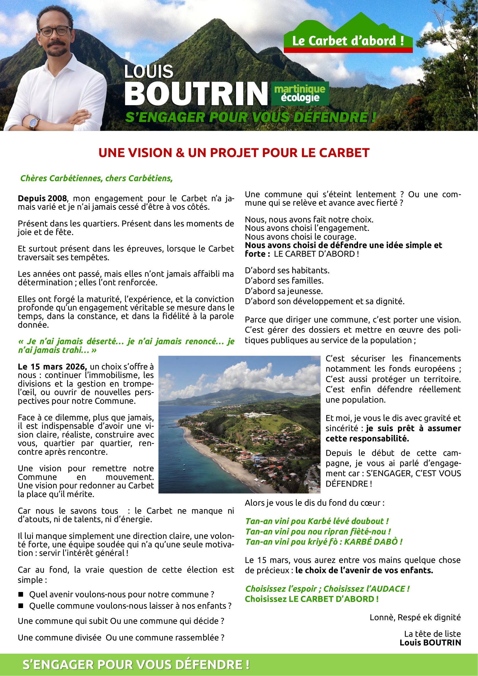 Depuis 2008, mon engagement pour le Carbet n’a jamais varié et je n’ai jamais cessé d’être à vos côtés.