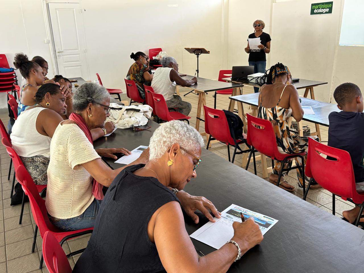 Karbet - EAC Bòd Lanmè – Sanmdi 18 oktob 2025. 10è bonmaten. « Komin Karbé sé yonn adan pli bel koté ki ni Matinik ». C’est par ces mots laudateurs de l’écrivain Raphaël Confiant que les participants ont planché sur la dikté kréyol 2025 organisée par Martinique-Écologie en partenariat avec la Ville du Carbet (Remerciements). Un texte très inspirant, empli de nuances et d’images évocatrices, qui a tenu en haleine les auditeurs d’un jour au moment même où la commune enterrait Christian Frédal, Carbétien dans l’âme, un homme d’une grande générosité dont la disparition a précipité bon nombre de concitoyens à sa cérémonie funéraire (RIP - Condoléances à la famille).